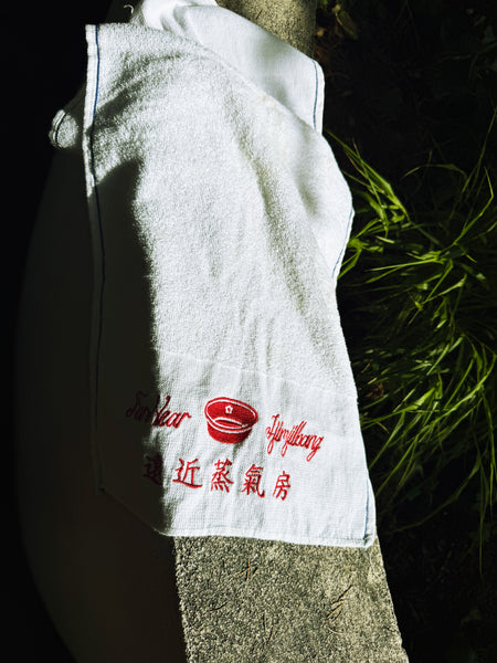 Inspired by Korean bathhouses, or jimjilbang, and the classic Singaporean good morning towel, this collaboration between FAR-NEAR and Christina Yuna Ko can be used as a sauna, sweat or hand towel. Sold as singles or pairs.